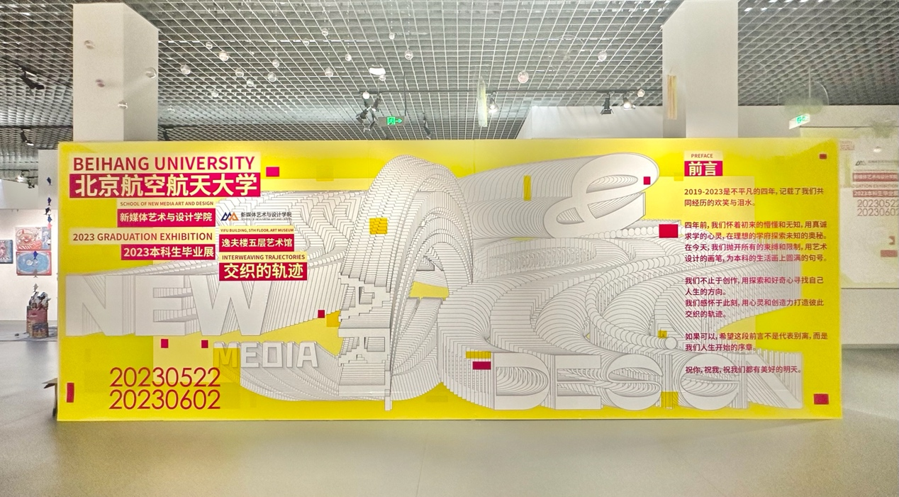 2023届本科毕业设计展交织的轨迹穿过疫情的阴霾赴约而来,四年的努力与成长,这是对老师们教育的感恩,是对学生成长的交代,也是新征程的号角。本次展览一件件出彩的艺术作品无不展示着四年的学习成果;这里并不是终点,这里是从艺道路上的新起点。