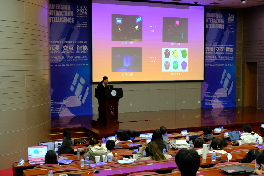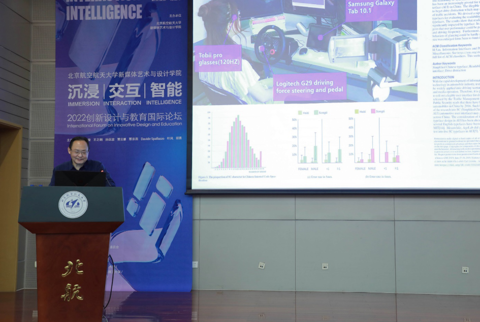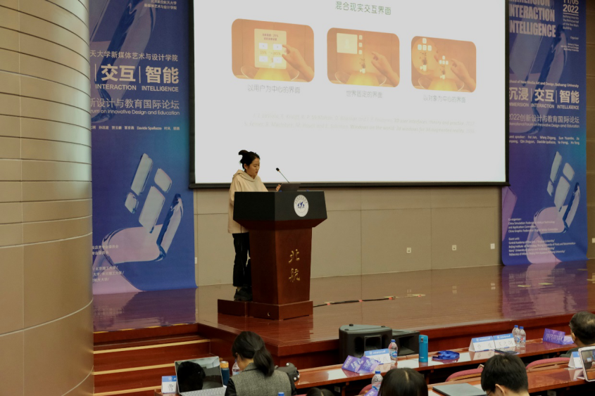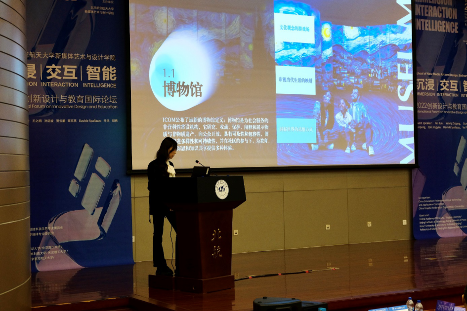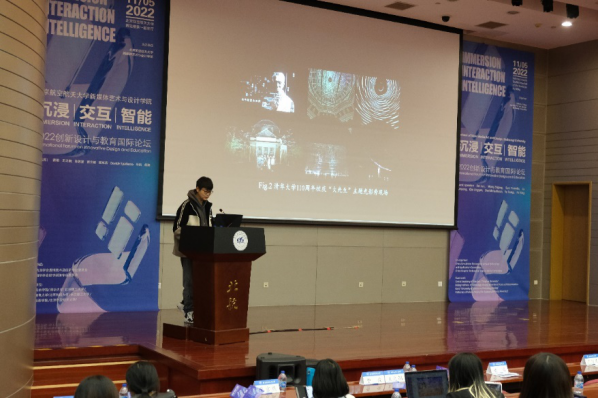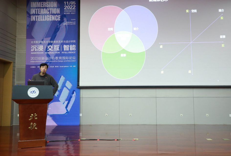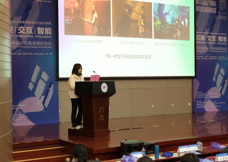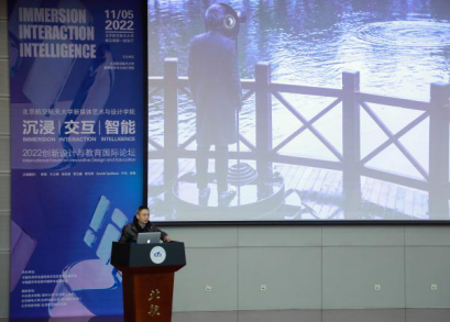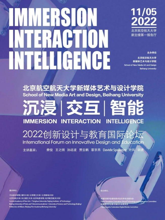 主办,中国仿真学会虚拟现实技术及应用专业委员会、中国图学学会数字媒体专业委员会协办的“沉浸|交互|智能——2022创新设计与教育国际论坛”在北京航空航天大学新主楼第一报告厅成功举办。论坛邀请了来自米兰理工大学、清华大学、中央美术学院、北京理工大学、北京科技大学、北京邮电大学、北京电影学院等高校的师生与我院师生共同探讨在数字媒体时代下沉浸式媒介的设计与教育创新。