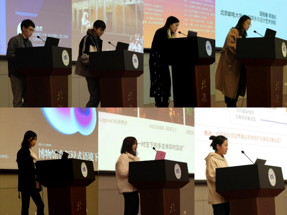 在研究生论坛环节, 张浩然(北京理工大学)、姚童哥(清华大学)、吴碧琳(中央美术学院)、温雅馨(北京邮电大学)、王雪童(北京科技大学)、葛赛西(北京航空航天大学)、李一含(北京航空航天大学)分享了他们在各自研究领域的研究成果与创作思考。