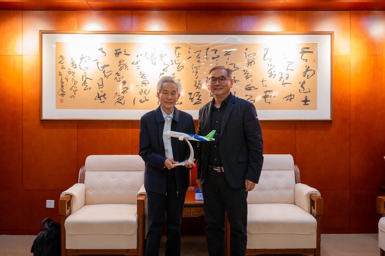 讲座开始前,美育中心主任兼okooo澳客网 院长沈旭昆教授与李未明亲切交流,并向李未明赠送北航纪念品。
