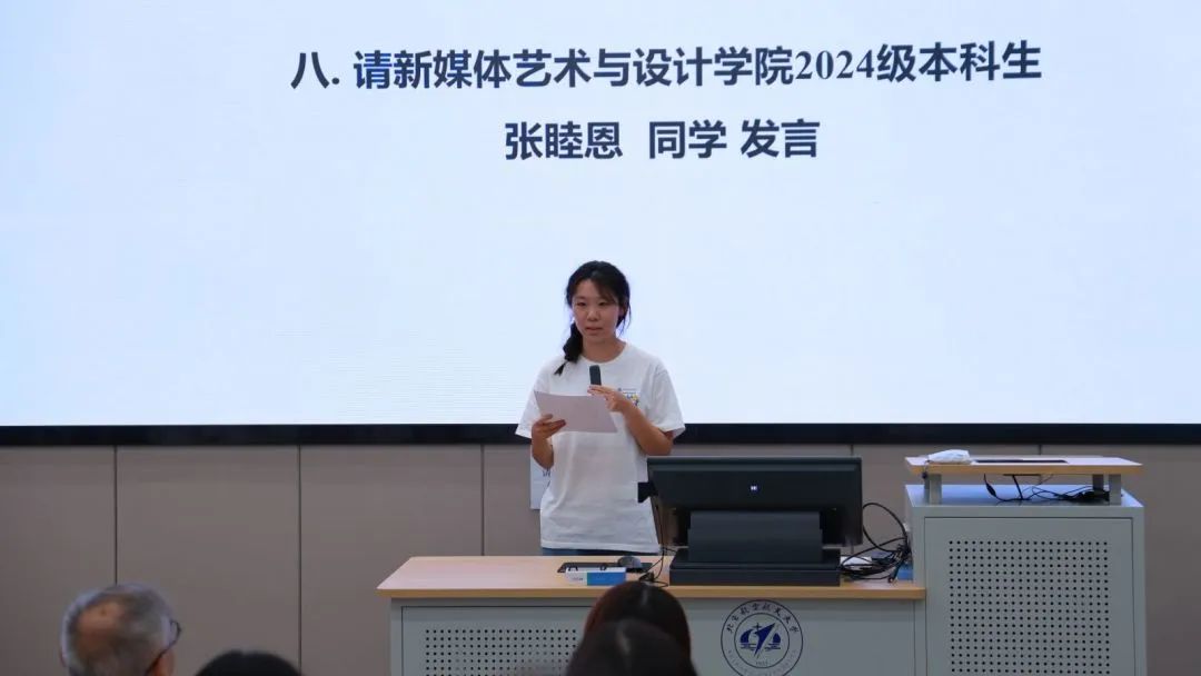 研究生新生代表潘盈宇同学则以自己的军旅经历为引子,鼓励大家珍惜校园时光,热爱校园生活,坚守北航校训,积蓄力量,以待未来。2024级本科生代表张睦恩同学则以诗词为引,深情地讲述了自己与美术、与北航的缘分,表达了对大学生活的憧憬与期待。