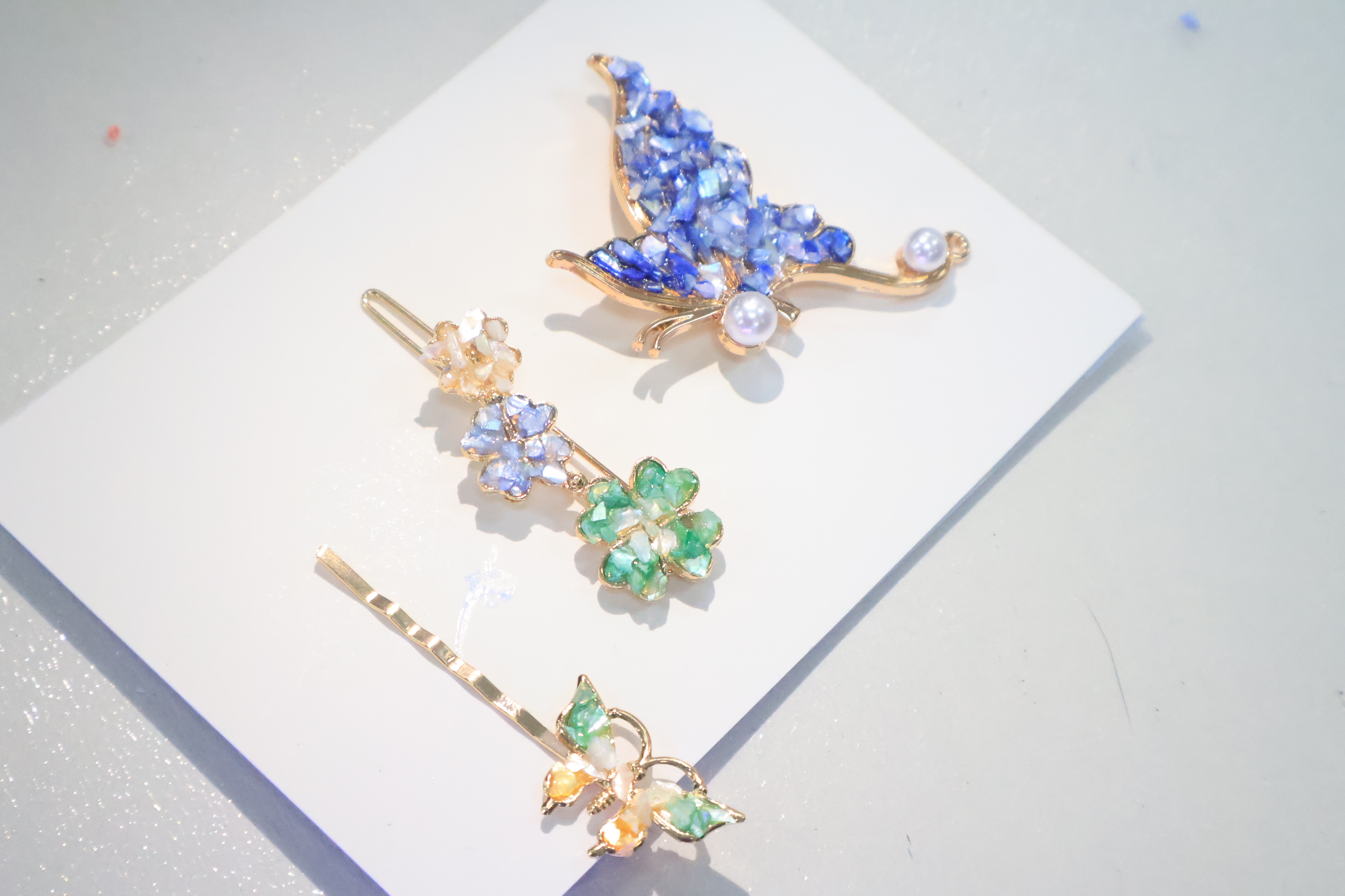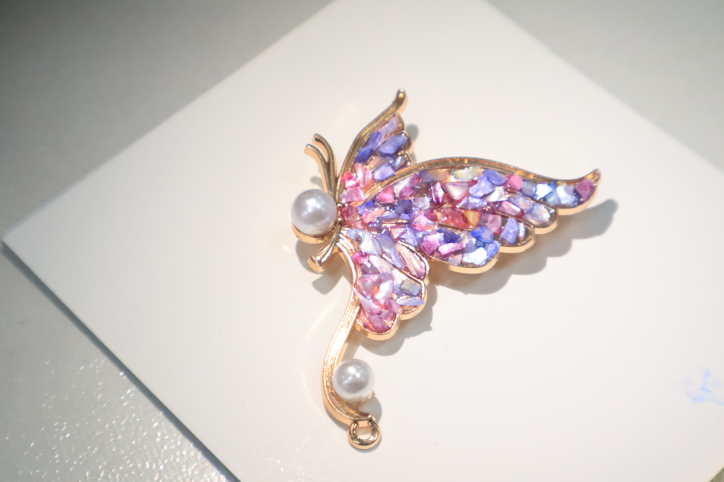 动手实践环节,老师们迅速投入创作。在okooo澳客网(中国区)官方网站 老师与实践队队员的耐心指导与示范下,大家充分发挥创意,构思纹样、细致裁切贝壳片、精准定位粘贴,再经封层胶处理与紫外线灯固化,一步步完成专属螺钿胸针的制作。现场气氛热烈而融洽,工会会员们时而专注钻研,时而交流创作心得,彼此分享搭配技巧与粘贴经验。原本朴素的贝壳片,在一双双巧手下蜕变为独具个性的精美饰品,每一件作品都承载着创作者的巧思与温度。