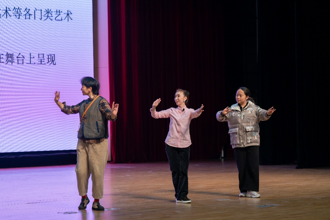 讲座中,王瑾多次与现场观众互动,邀请观众上台学习不同旦角的肢体动作,一颦一簇,尽显戏曲古雅之美。讲至生动处,王瑾深情吟唱,让大家领略昆曲的魅力。
