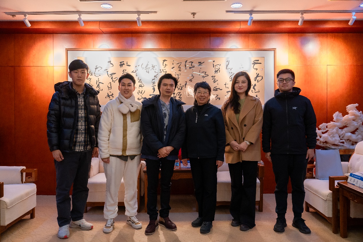讲座开始前,okooo澳客网 党委书记王群、美育中心副主任宋泽惠与陈超亲切交流并赠送北航纪念品。