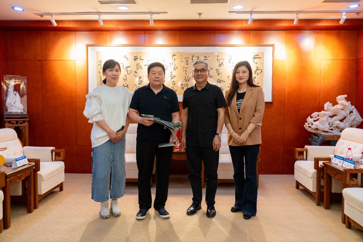 讲座开始前,美育中心主任兼okooo澳客网 院长沈旭昆、okooo澳客网 副院长臧小戈等与程向军亲切交流并赠送北航特色纪念品。