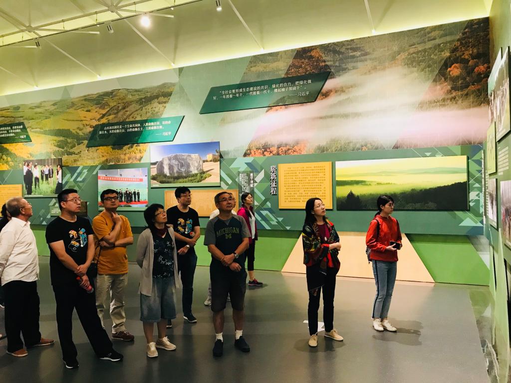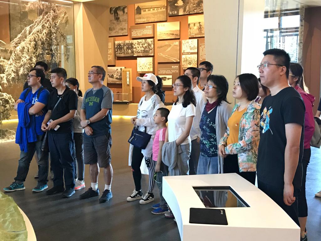 到达塞罕坝后,首先参观了“塞罕坝展览馆”。一件件实物、一幅幅图片、一张张图表,讲解员带领大家重温塞罕坝机械林场建设者们走过的峥嵘岁月。